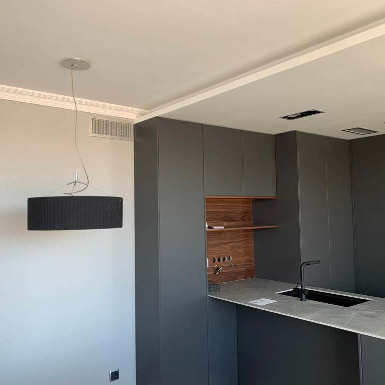 Detall de calaix de pladur per amagar el conducte en un pis de l'Eixample
