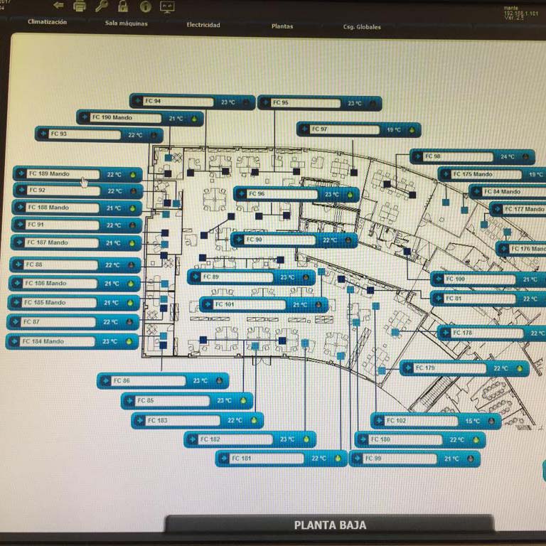 Oficines amb cassettes integrats al fals sostre tipus fan-coil