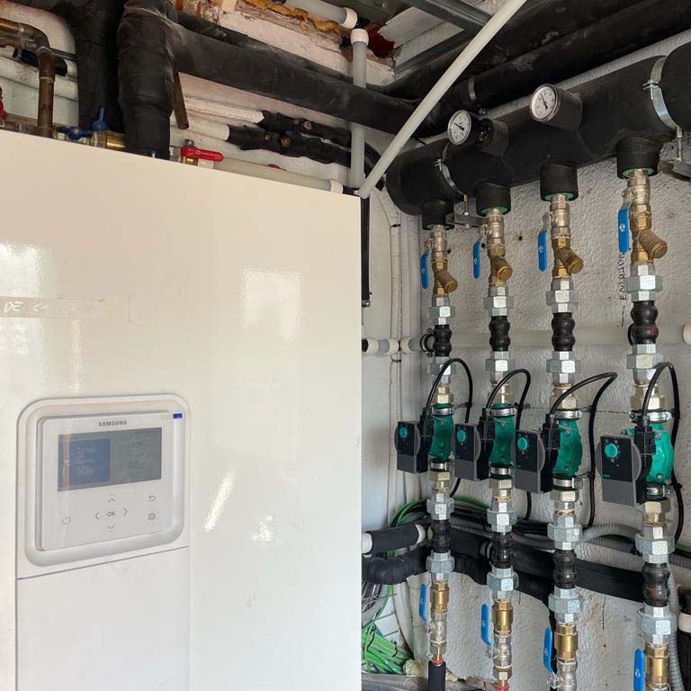 Sistema d'aigua per radiadors i fan-coils amb aerotèrmia a Sant Just Desvern