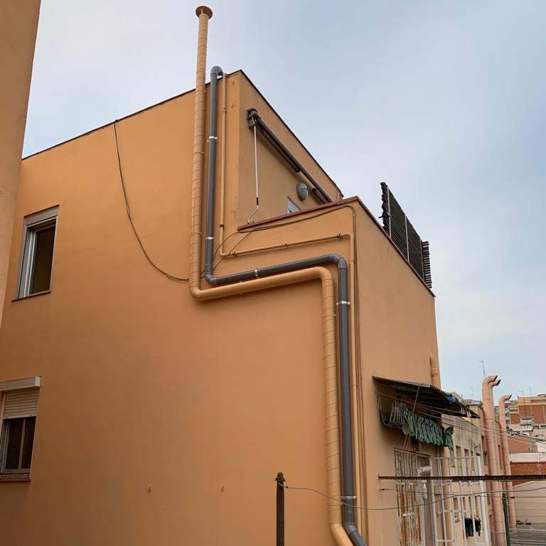 Màquina de conductes amb canonades amagades dins tub de PVC per pujar al terrat